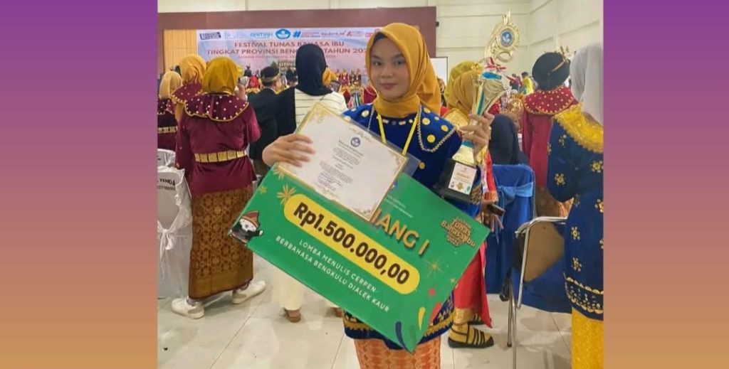 KAUR, || BT.M – – Kanaya Nisyafitri Antoni, siswi SMP Negeri 8 Kaur, berhasil meraih juara 1 dalam lomba cerpen bahasa daerah se Provinsi Bengkulu. Ia akan melanjutkan ke tingkat nasional mewakili Provinsi Bengkulu dengan tema “Sejarah Nasionalisme Indonesia dan Persahabatan” yang berisi tentang pengkhianatan, perjuangan, dan kehilangan. Minggu 16/11/25