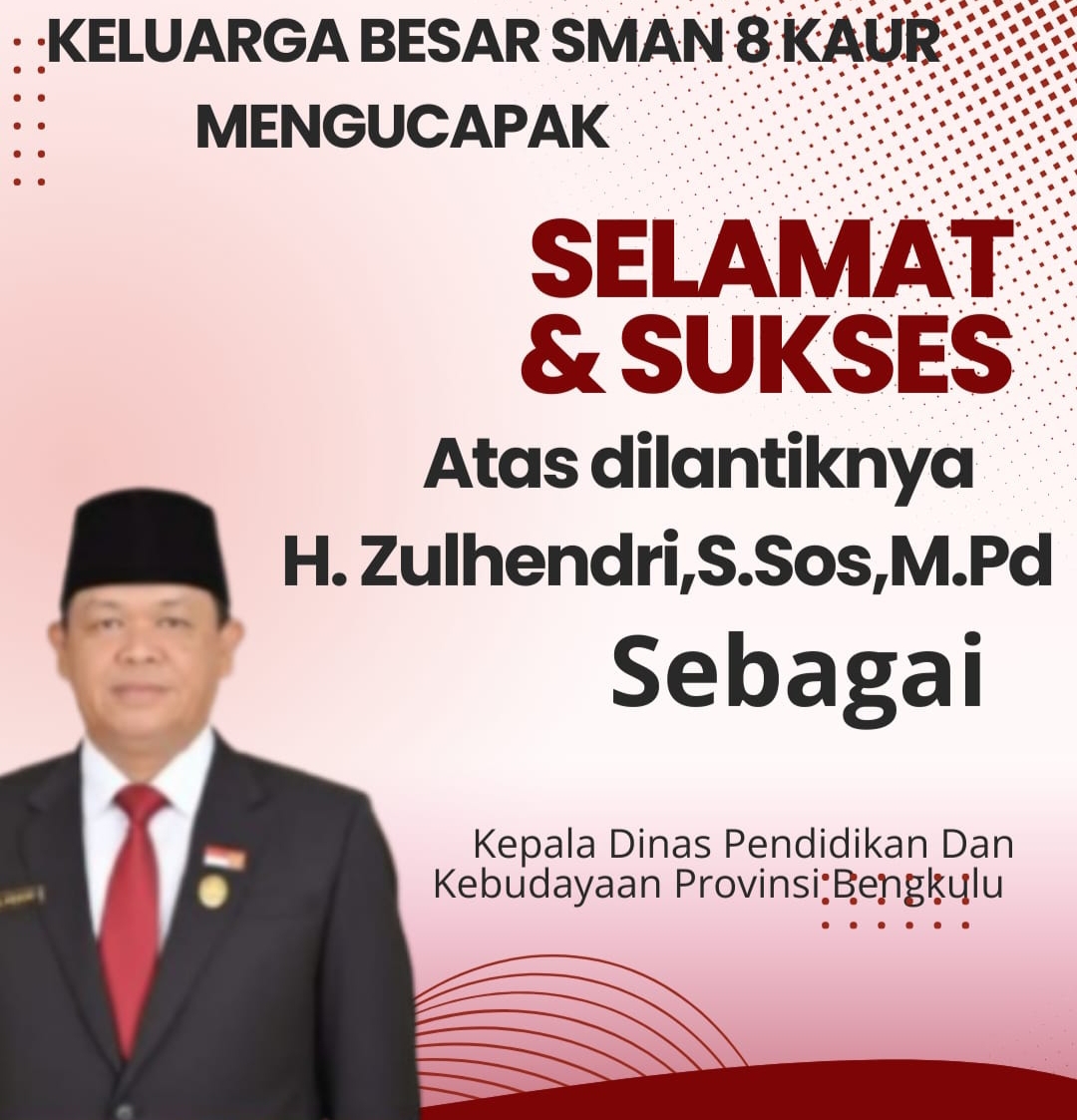 KAUR, BT.M – Keluarga besar SMA Negeri 8 Kaur menyampaikan apresiasi dan ucapan selamat yang mendalam atas dilantiknya H. Zulhendri, S.Sos,...