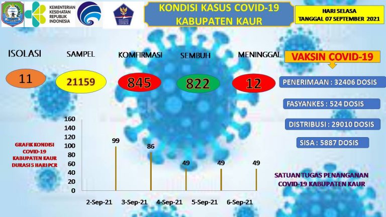 Berita Terkini.Media, || KAUR– Hari ini, Selasa (7/9/2021). Dinas Kominfo Kabupaten Kaur kembali mengupdate data kasus terpapar Covid-19. Dalam hal...
