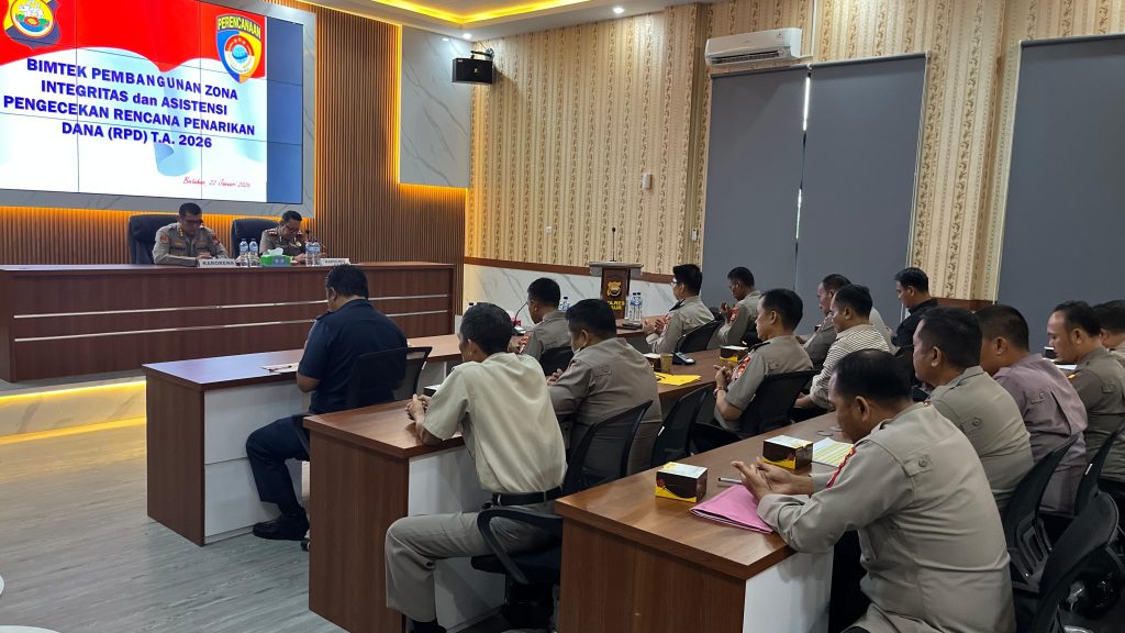 KAUR,BT.M – Polres Kaur mengikuti kegiatan Bimbingan Teknis (Bimtek) Pembangunan Zona Integritas serta asistensi pengecekan Rencana Penarikan Dana (RPD) Tahun Anggaran 2026 yang dilaksanakan di ruang Command Center Polres Kaur, Kamis (22/1/2026).